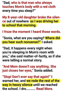 Five minutes after we got into our family bed, I pretended to fall asleep. I squeezed my eyes tightly shut.
