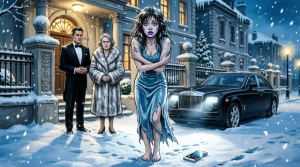 “That’s correct,” he said calmly. He wore a dark overcoat and leather gloves, the kind of outfit you’d expect outside a high-end hotel, not on a suburban road in a snowstorm. He glanced at me once—really glanced—taking in my torn sweater, my wet socks, the way my hands shook.
