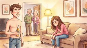 My mother Linda stepped through the front door carrying two paper bags fragrant with steam and gravy, her expression softened by habitual affection, while my father Harold followed closely behind, his posture relaxed, unaware that this ordinary visit would fracture illusions none of us fully understood. Evan lounged comfortably in his recliner near the television, shirt loose, beer balanced lazily in his hand, his casual indifference radiating a confidence born from certainty that silence would once again protect him.