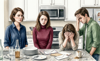 My father’s gaze slid deliberately toward the family photographs lining the wall, his attention fixed upon smiling memories rather than confronting the swollen reality directly before him. Silence flooded the room with suffocating density, pressing heavily against my ribs until even the refrigerator’s low hum sounded unnaturally loud.