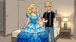 “Oh, this is great. You’re going to prom dressed in old jeans like some kind of charity project, and you think people will applaud?”