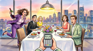 “Sorry,” he said with mock sympathy, “table’s for family only. But there’s a spot for you right over there.”