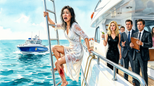 A police boat sped toward us, lights flashing. Behind it, a black security vessel pulled up alongside the yacht. Within seconds, officers and men in suits boarded with precision.