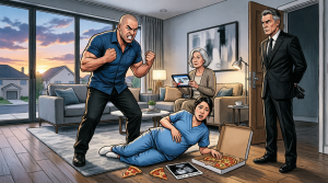 “Finally,” his mother Margaret muttered from an armchair, still staring at her tablet. “We had to order pizza because you disappeared all day. The house is a mess.”