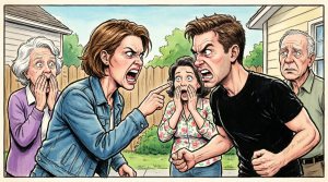 “You embarrassed her,” he continued, his voice rising as if volume could replace logic. “She was in the middle of a store, people were staring, and now she feels humiliated.”