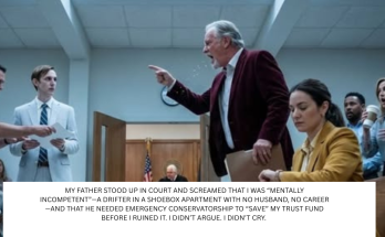 MY FATHER STOOD UP IN COURT AND SCREAMED THAT I WAS “MENTALLY INCOMPETENT”—A DRIFTER IN A SHOEBOX APARTMENT WITH NO HUSBAND, NO CAREER—AND THAT HE NEEDED EMERGENCY CONSERVATORSHIP TO “SAVE” MY TRUST FUND BEFORE I RUINED IT. I DIDN’T ARGUE. I DIDN’T CRY. I JUST SAT THERE IN SILENCE, HANDS FOLDED, CHECKING MY WATCH LIKE I WAS WAITING FOR A TRAIN. 10:02 A.M. RIGHT ON SCHEDULE. HE KEPT GOING—MOCKING MY “CHEAP SUIT,” MY “SCUFFED SHOES,” EVEN THE BUILDING HE THOUGHT I RENTED IN—UNTIL THE JUDGE LEANED FORWARD AND ASKED ONE CHILLING QUESTION: “YOU REALLY DON’T KNOW WHO SHE IS, DO YOU?” ACROSS THE ROOM, HIS LAWYER FROZE MID-BREATH WHEN THE BAILIFF HANDED HIM A SINGLE DOCUMENT—THE COLOR DRAINED FROM HIS FACE SO FAST I THOUGHT HE’D FAINT. THEN THE JUDGE SLID ONE PIECE OF PAPER ACROSS THE BENCH TOWARD MY FATHER… AND HIS SMUG CONFIDENCE FINALLY CRACKED WHEN HE READ THE FIRST LINE… BECAUSE IT WASN’T ABOUT MY TRUST FUND AT ALL……